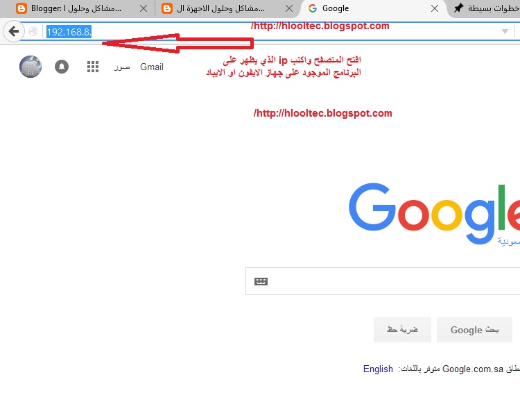 – اذهب الى جهاز الكمبيوتر وافتح المتضفح واكتب الاي بي ip في العنوان كما في الصورة
