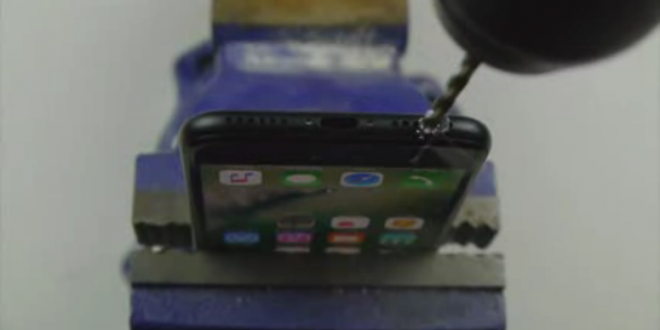 انتشر فيديو جديد، الاثنين، بسرعة رهيبة وتجاوز عدد مشاهديه 10 ملايين شخص. والمقطع يسجل عملية حفر جهاز هاتف “آيفون 7” بمثقاب من أجل فتح منفذ للسماعة. وبالفعل تنجح التجربة في لحظات، وتعمل السماعة في المنفذ الجديد، ويصدح الهاتف بالأصوات.