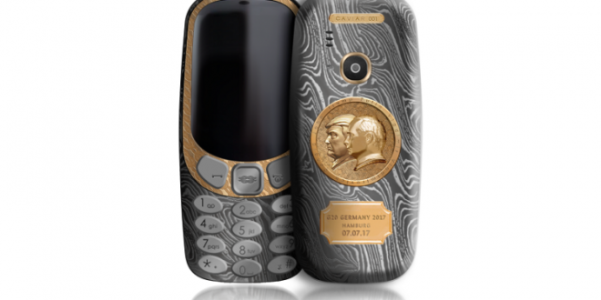وقالت شركة “كافيار” Caviar على الصفحة الخاصة بالهاتف على موقعها الإلكتروني: “تكريمًا لاجتماع الرئيسين الروسي والأمريكي، أنشأت كافيار نموذجًا جامعًا لنوكيا 3310 مع صورة لقادة البلدين”.